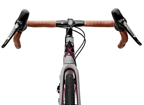Manillar, potencia y tija son de aluminio y de gama comp de Ritchey. El manillar Ritchey Venturemax Comp presenta una curva más abierta muy característica de manillares que se adapta a la práctica del gravel y ciclocross.