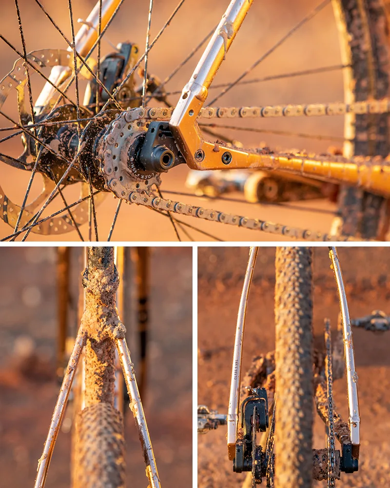 Según los primeros comentarios y entradas de otras webs, está enfocada a un gravel en condiciones donde nos encontramos caminos embarrados y de esta manera, nos despreocupamos si el cambio trasero sufre o se estropea.